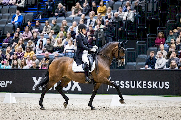 ”Olen ylpeä tästä kuumahkosta tammastani, meillä oli tänään todella hauskaa. Tammassa piisaa poweria vielä, se ei varmasti lopu, mutta tietysti päivä kerrallaan mennään, kun ikää Clementinellä on jo mittarissa”, Sikström kertoo. Messukeskuksen puitteet saivat kiitosta kokeneelta kotimaan kärkiratsastajalta.