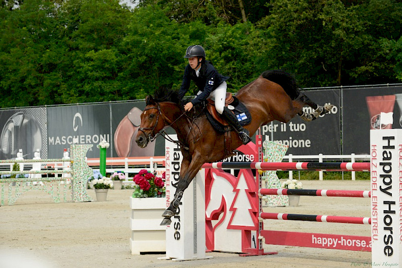Nuorissa ratsastajissa sekä Aura Vasama ja Canto Bruno sekä Anni Hjerpe ja Callboy ovat tehneet tasaisia suorituksia. Vasama ja Canto Bruno saivat tiistain aikaratsastusluokasta rasitteekseen kaksi pudotusta, Hjerpe ja Callboy olivat maalissa 16 virhepisteellä. Nuorten ratsastajien kilpailu jatkuu ensimmäisellä karsintakierroksella torstaina. Italiassa kärsitään parhaillaan kovista helteistä, joka on tuonut omat haasteensa suorituksiin.