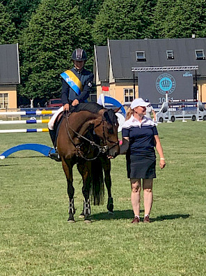 ”Ihan hemmetin hyvät fiilikset. Nyt minä viimeisenä päivänä aloin vähän tsemppaamaan, ja ratsastuskin alkoi olla vähän parempaa. Nyt yhteistyö sujui paljon paremmin Elsan [Eolita L] kanssa. Ei voi olla kuin tyytyväinen”, Pohjoismaiden ja Baltian mestari junioreissa sanoo.