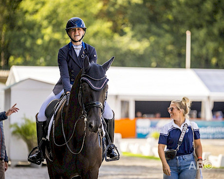”Ihan sika hieno aloitus kaudelle. Aloitin vähän varovasti ensimmäisenä päivänä, kun Prinssi on usein aika fressi ensimmäisenä kisapäivänä. Hevonen aloitti kuitenkin luottavaisesti ja hyvin”, kuvailee Laura Kangasniemi.