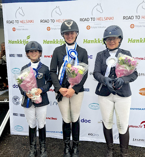 Toiseksi ratsasti järvenpääläinen Helsingin Ratsastajia edustava Jessica Kerttunen ratsunaan Duyou Mi, ja kolmanneksi maivalalainen Hanne Soininen ratsunaan La Belleza.