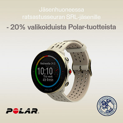 Ratsastusseuran SRL-jäsenelle on nyt uusi houkutteleva etu. Helmikuun jäsenetuna on 20 % alennus Polarin tuotteista. Liikkumiseen kannustavaa etua voi käyttää kirjautumalla Jäsenhuoneeseen ja aktivoimalla edun linkin kautta. Jäsenhuoneesta löydät tuotteet, joita tarjous koskee.
