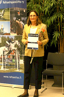 Ratsastajainliiton liittokokous myönsi kultaisen ansiomerkin Liisa Jalkaselle Siilinjärveltä, Reijo Hietamäelle ja Pia-Mari Tanskaselle Helsingistä ja Sirpa Ruojärvelle Porista. Kultainen ansiomerkki voidaan myöntää henkilölle, joka on vähintään 20 vuoden ajan erittäin ansioituneesti toiminut liiton, jäsenyhdistyksen ja -yhteisön hyväksi, joka on toimenpiteillään tuntuvasti tukenut liiton toimintaa tai erittäin huomattavasti myötävaikuttanut koko maan ratsastusurheilun edistämisessä.