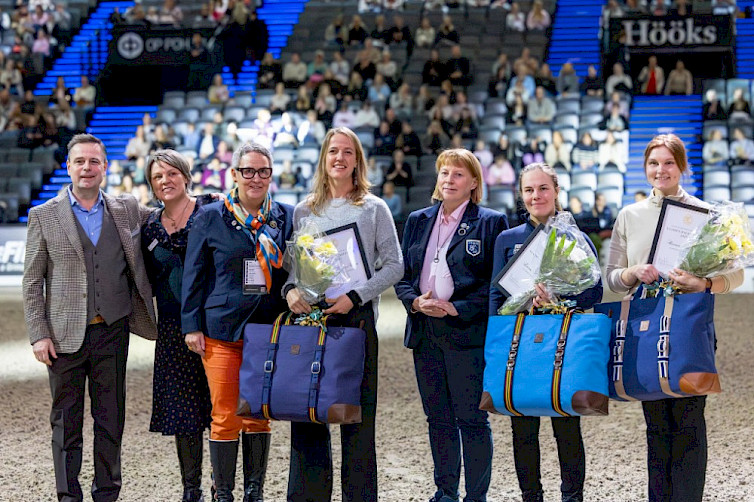 Valiomerkit ja valjakkoajon FEI Badge of Honor tunnukset jaettiin lehdistötiloissa