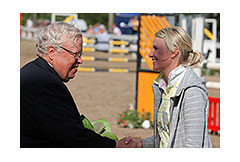 Piia Pantsu ja Ypäjä Karuso voittivat kultaa ylivoimaisesti kenttäratsastuksen SM-kilpailussa Keravalla. Kyseessä on Pantsun ensimmäinen SM-voitto. Hopealle nousi viimeiseltä sijalta Jani Laurikainen Examenilla. Laurikainen oli Pantsun ohella ainoa, joka hyppäsi rataesteet nollilla. Pronssimitalin veivät Perttu Puranen ja Kuldbjerg Maya. Kuvassa Piiaa onnittelee Fred Sundwall.