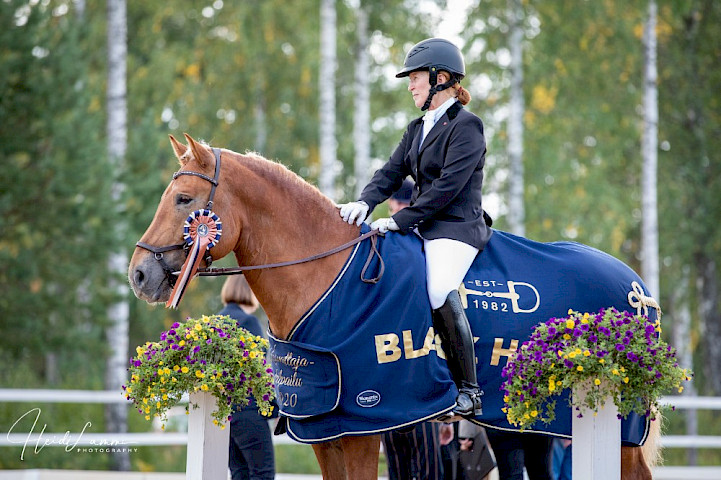– Meidän yhteistyömme on jatkunut nyt kolmisen vuotta. Kassu oli viime vuoden enemmän astutushommissa, mutta olen ratsastanut sitä koko tämän vuoden, toissa vuonna otimme hopeaa. Iso kiitos menestyksestämme kuuluu valmentajalleni Kiki Nybergille. Hevosen koulutustaso on tällä hetkellä vahva vaativa B, joka on astetta haastavampi kuin tämä mestaruustaso.